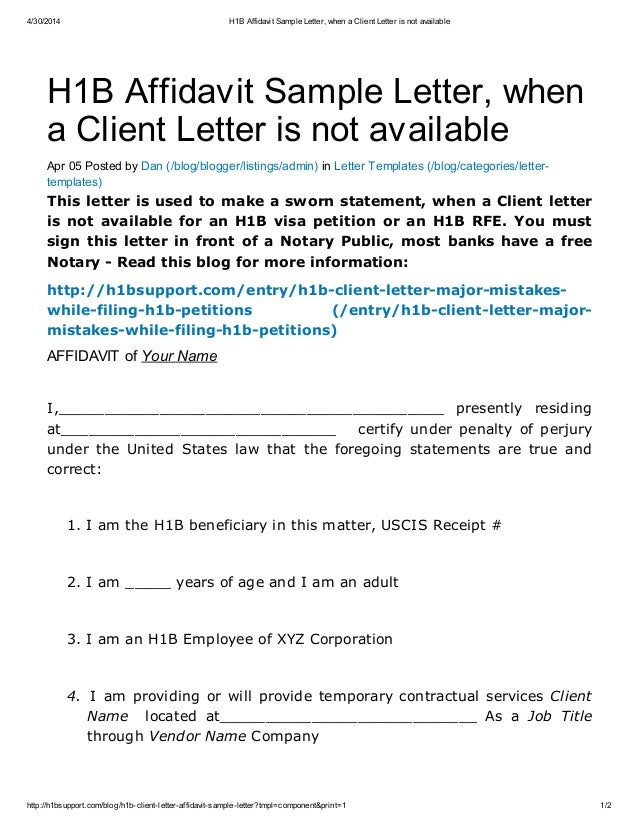 Sample H 1b Client Letter